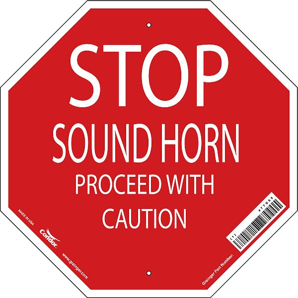 Safety Sign, 18" Wx18" H, 0.032" Thickness, 477G55SKU G6030479Categories SafetyDescription Safety Sign, Octagon, Number of Printed Sides 1, English, Sign Format Other Format, Sign Legend Stop Sound Horn Proceed With Caution, Sign Legend Background Color Red, Sign Legend Style TextgraingerSKU: 477G55, mscSKU: , zoro_no: G6030479, mongo_id: 65bbe8f722d7a989a99273eb