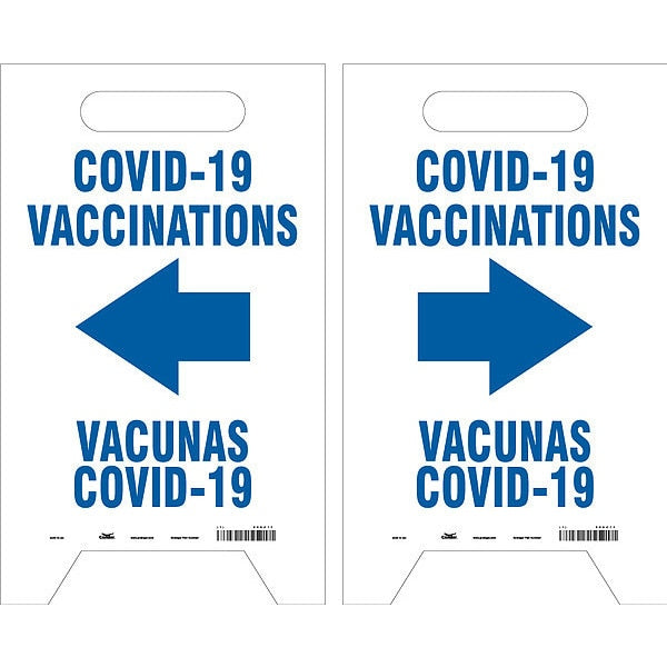 SKU G500410863Categories SafetyDescription Floor Sign, Height 20 in, Width 12 in, Sign Material Plastic, Header No Header, Legend Covid-19 Vaccinations Vacunas Covid-19 (Left Arrow/Right Arrow), Printed Language English, SpanishgraingerSKU: , mscSKU: , zoro_no: G500410863, mongo_id: 65bbe8f722d7a989a992758d