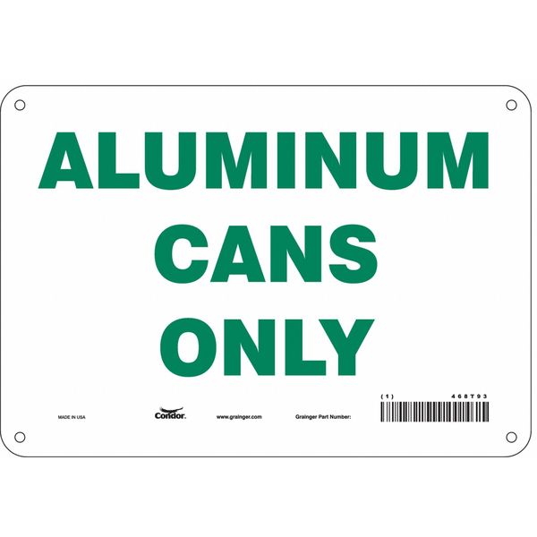 SKU G5609970Categories SafetyDescription Safety Sign, Vertical Rectangle, Number of Printed Sides 1, English, Sign Format Other Format, Sign Legend Aluminum Cans Only, Sign Legend Background Color White, Sign Legend Style TextgraingerSKU: 468T93, mscSKU: , zoro_no: G5609970, mongo_id: 65bbe8f722d7a989a99273c5
