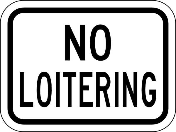 SKU G0212554Categories SafetyDescription Traffic Sign, Vertical Rectangle, Number of Printed Sides 1, English, Sign Format Other Format, Sign Legend No Loitering, Sign Legend Background Color White, Sign Legend Style Text Traffic Sign, 9 x 12In, BK/WHT, Text, R7-428