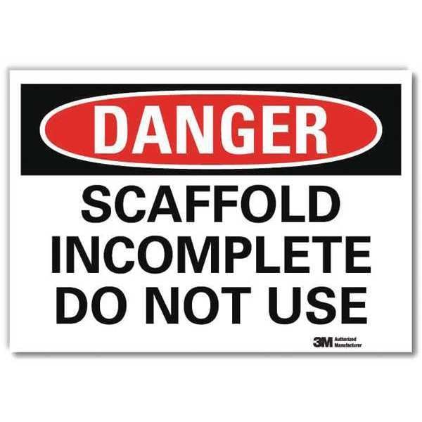 SKU G2739558Categories SafetyDescription Danger Sign, Horizontal Rectangle, Number of Printed Sides 1, English, Sign Format Traditional OSHA, Sign Legend Scaffold Incomplete Do Not Use, Sign Legend Background Color White, Sign Legend Style Text Danger Sign, 10 in H, 14 in W, Reflective Sheeting, Horizontal Rectangle, English, U3-1976-RD_14X10