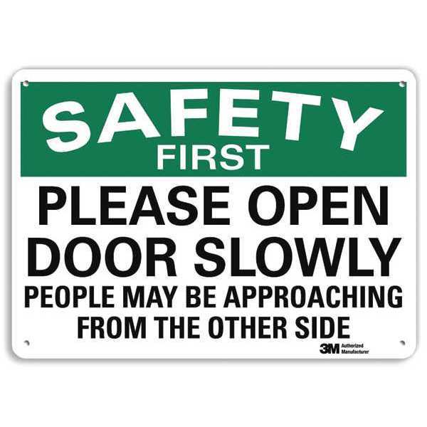 SKU G1813887Categories SafetyDescription Safety Sign, Vertical Rectangle, Number of Printed Sides 1, English, Sign Legend Please Open Door Slowly People May Be Approaching From The Other Side, Sign Legend Background Color White, Sign Legend Style Text Safety Sign, 7 in Height, 10 in Width, Aluminum, Vertical Rectangle, English, U7-1225-RA_10X7