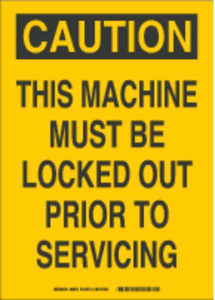 SKU G8629107Categories SafetyDescription Caution Security Sign, Sign Subject Matter Lockout Tagout, Height 7 in, Width 5 in, Sign Material Polyester, Sign Mounting Style Adhesive Surface, Header Caution, Legend This Machine Must Be Locked Out Prior To Servicing, Printed Language English, Sign Shape Rectangle Caution Security Sign, 7 in Height, 5 in Width, Polyester, Rectangle, English