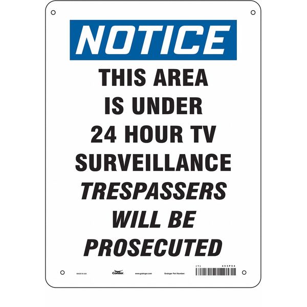 Security Sign, 14 in H, 10 in W, Aluminum, Vertical Rectangle, English, 453P54SKU G5101000Categories SafetyDescription Security Sign, Vertical Rectangle, Number of Printed Sides 1, English, Sign Legend This Area Is Under 24 Hour TV Surveillance Trespassers Will Be Prosecuted, Sign Legend Background Color White, Sign Legend Style TextgraingerSKU: 453P54, mscSKU: , zoro_no: G5101000, mongo_id: 65bbe8d122d7a989a9918e62