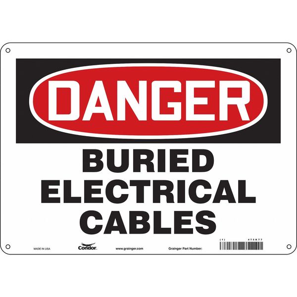 Safety Sign, 10 in Height, 14 in Width, Aluminum, Horizontal Rectangle, English, 475K77SKU G5122463Categories SafetyDescription Safety Sign, Horizontal Rectangle, Number of Printed Sides 1, English, Sign Format Traditional OSHA, Sign Legend Buried Electrical Cables, Sign Legend Background Color White, Sign Legend Style TextgraingerSKU: 475K77, mscSKU: , zoro_no: G5122463, mongo_id: 65bbe8d122d7a989a9918f6d
