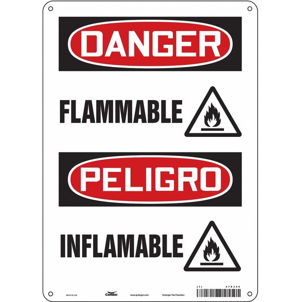 Safety Sign, 14 in Height, 10 in Width, Aluminum, Vertical Rectangle, English, Spanish, 478J44SKU G5834689Categories SafetyDescription Safety Sign, Vertical Rectangle, Number of Printed Sides 1, English, Spanish, Sign Format Traditional OSHA, Sign Legend Flammable/Inflamable, Sign Legend Background Color White, Sign Legend Style Symbol and TextgraingerSKU: 478J44, mscSKU: , zoro_no: G5834689, mongo_id: 65bbe8d122d7a989a9918d90
