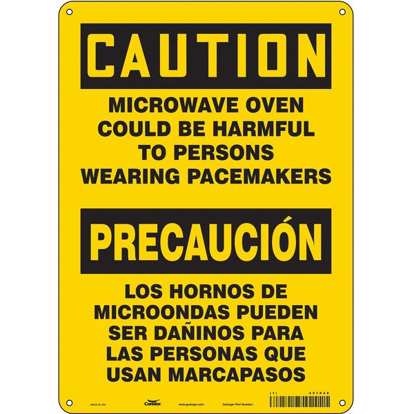 SKU G5258668Categories SafetyDescription Safety Sign, Horizontal Rectangle, Number of Printed Sides 1, English, Spanish, Sign Format Traditional OSHA, Sign Legend Microwave Oven Could Be Harmful To Persons Wearing Pacemakers/Los Hornos De Microondas Pueden Ser Daninos Para Las Personas Que Usan Marcapasos, Sign Legend Background Color Yellow, Sign Legend Style TextgraingerSKU: 451X28, mscSKU: , zoro_no: G5258668, mongo_id: 65bbe8d122d7a989a9918f1e