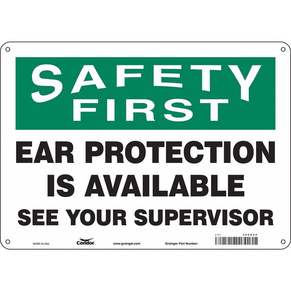 SKU G5895178Categories SafetyDescription Safety Sign, Horizontal Rectangle, Number of Printed Sides 1, English, Sign Format Traditional OSHA, Sign Legend Ear Protection Is Available See Your Supervisor, Sign Legend Background Color White, Sign Legend Style TextgraingerSKU: 466G59, mscSKU: , zoro_no: G5895178, mongo_id: 65bbe8d122d7a989a9918d45