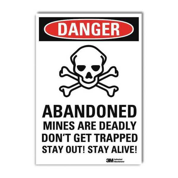 Danger Sign, 14 in H, 10 in W, Reflective Sheeting, Vertical Rectangle, English, U3-1082-RD_10X14SKU G2753731Categories SafetyDescription Danger Sign, Vertical Rectangle, Number of Printed Sides 1, English, Sign Format Traditional OSHA, Sign Legend Abandoned Mines Are Deadly, Don't Get Trapped. Stay Out! Stay Alive!, Sign Legend Background Color White, Sign Legend Style Symbol and TextgraingerSKU: , mscSKU: , zoro_no: G2753731, mongo_id: 65bbe96322d7a989a9952183