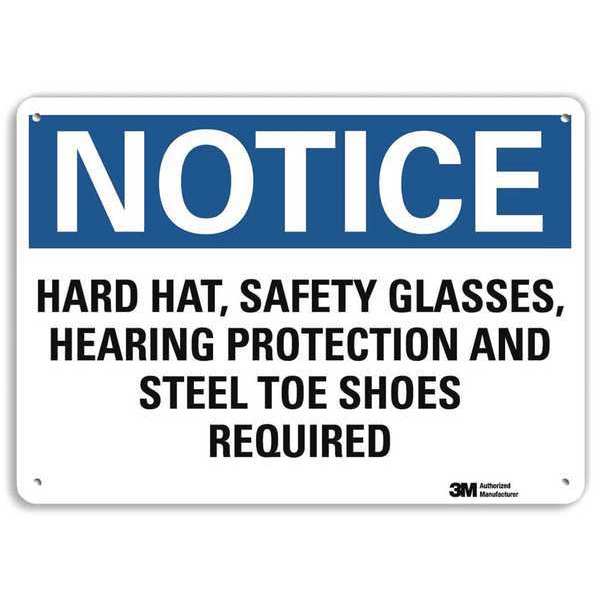 Notice Sign, RecycldReflecAlum, 10inWx7inH, U5-1254-RA_10X7SKU G2761720Categories SafetyDescription Notice Sign, Vertical Rectangle, Number of Printed Sides 1, English, Sign Format Traditional OSHA, Sign Legend Hard Hat, Safety Glasses, Hearing Protection And Steel Toe Shoes Required, Sign Legend Background Color White, Sign Legend Style TextgraingerSKU: 34JN56, mscSKU: , zoro_no: G2761720, mongo_id: 65bbe96322d7a989a9952152