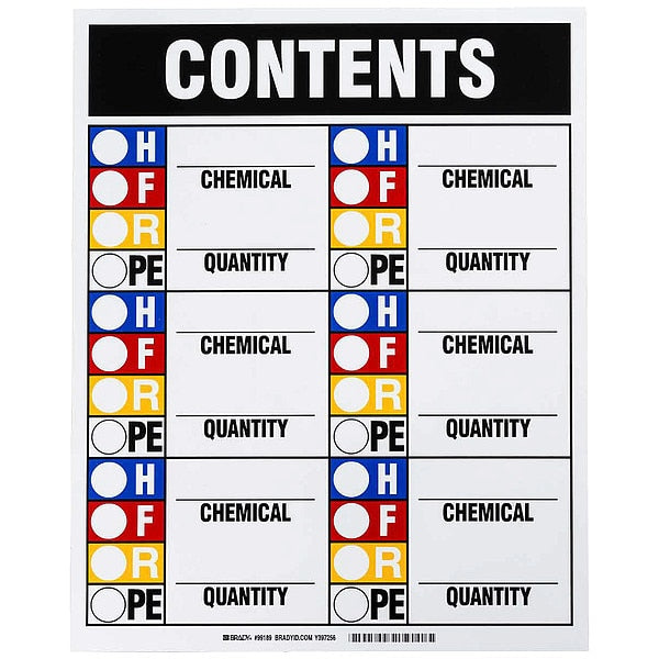 Cabinet Content Sign, HMIGSKU G4201757Categories SafetyDescription HMIG Rating Sign, Chemical Quantity, Magnetic, Height 15 in, Width 12 in, Header Contents, Legend Style Text, Language English, Mounting Style Magnetic, Sign Shape Rectangle, Retroreflective Grade Not RetroreflectivegraingerSKU: 8AEC9, mscSKU: , zoro_no: G4201757, mongo_id: 65bbe6ee3aaddbd5a9062e17