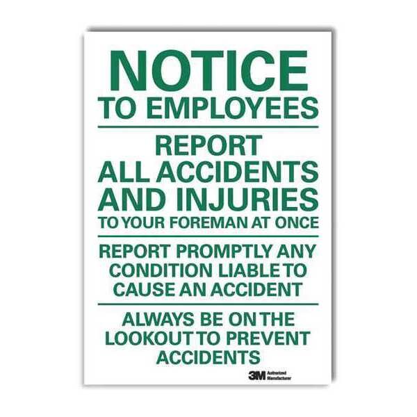 SKU G2756540Categories SafetyDescription Notice Sign, Horizontal Rectangle, Number of Printed Sides 1, English, Sign Format Other Format, Sign Legend Report All Accidents And Injuries To Your Foreman At Once, Sign Legend Background Color White, Sign Legend Style TextgraingerSKU: 34JY43, mscSKU: , zoro_no: G2756540, mongo_id: 65bbe6db3aaddbd5a905a183