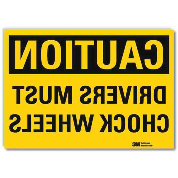 SKU G2723659Categories SafetyDescription Safety Sign, Horizontal Rectangle, Number of Printed Sides 1, English, Sign Format Traditional OSHA, Sign Legend Drivers Must Chock Wheels (Mirrored Image), Sign Legend Background Color Yellow, Sign Legend Style TextgraingerSKU: 35JM57, mscSKU: , zoro_no: G2723659, mongo_id: 65bbe98822d7a989a9960626