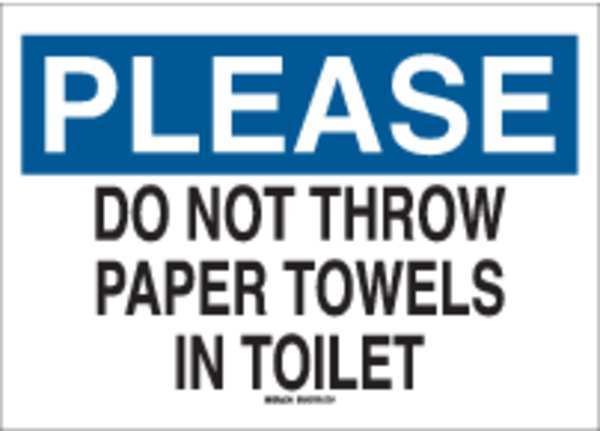 $11.49 / eachWeb priceHousekeeping Sign, 7"X10", Polyester, Header: Please, 85662SKU G8472060Categories SafetyDescription Housekeeping Sign, Sign Subject Matter Restrooms, Height 7 In., Width 10 In., Sign Material Polyester, Sign Mounting Style Adhesive Surface, Header Please, Legend Do Not Throw Paper Towels In Toilet, Printed Language English, Sign Shape RectanglegraingerSKU: , mscSKU: , zoro_no: G8472060, mongo_id: 65bbe98822d7a989a99608d1