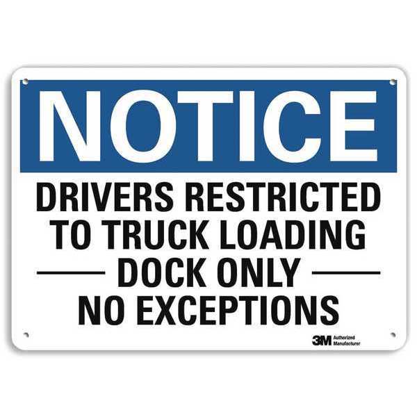 $9.86 / eachWeb priceNotice Sign, 7 in H, 10 in W, Aluminum, Vertical Rectangle, English, U5-1159-RA_10X7SKU G2763385Categories SafetyDescription Notice Sign, Vertical Rectangle, Number of Printed Sides 1, English, Sign Format Traditional OSHA, Sign Legend Drivers Restricted To Truck Loading Dock Only No Exceptions, Sign Legend Background Color White, Sign Legend Style TextgraingerSKU: 34JL09, mscSKU: , zoro_no: G2763385, mongo_id: 65bbe98822d7a989a996065e