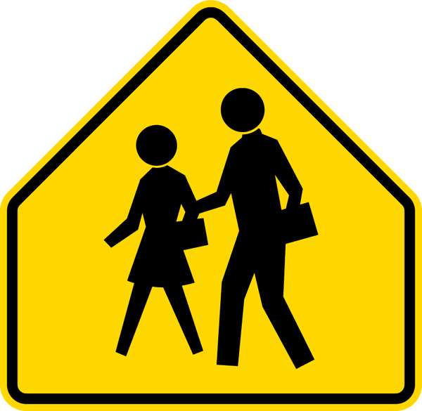 School Crossing Pictogram Traffic Sign, 24 in Height, 24 in Width, Aluminum, Pentagon, No Text