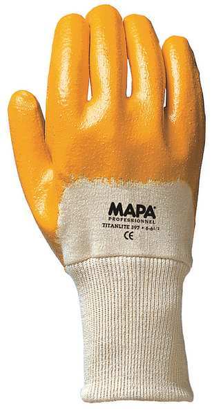 Nitrile Coated Gloves, 3/4 Dip Coverage, Yellow, 7, PR