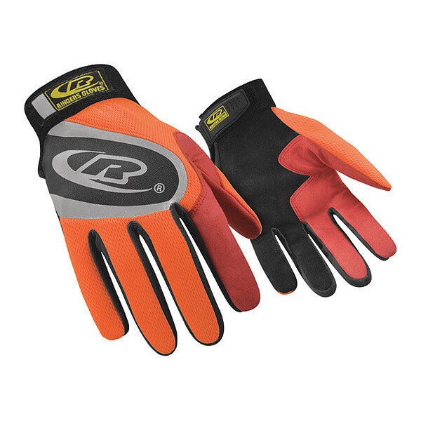 Leather Palm Gloves, High Visibility Orange, S, PR