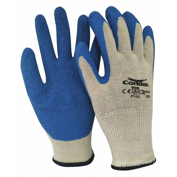 Natural Rubber Latex Coated Gloves, Palm Coverage, Blue/Beige, 2XL, PR