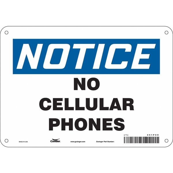 Safety Sign Cell Phone, 7 in H, 10 in W, Aluminum, Vertical Rectangle, English, 451P09SKU G5169409Categories SafetyDescription Safety Sign Cell Phone, Vertical Rectangle, Number of Printed Sides 1, English, Sign Legend No Cellular Phones, Sign Legend Background Color White, Sign Legend Style TextgraingerSKU: 451P09, mscSKU: , zoro_no: G5169409, mongo_id: 65bbe8ab22d7a989a990aa34
