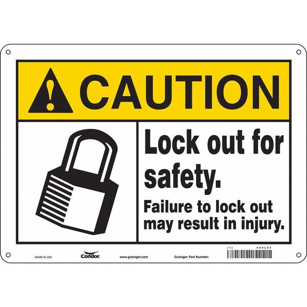 Safety Sign, 10 in Height, 14 in Width, Aluminum, Horizontal Rectangle, English, 469L03SKU G5260698Categories SafetyDescription Safety Sign, Horizontal Rectangle, Number of Printed Sides 1, English, Sign Format Traditional OSHA, Sign Legend Lock Out For Safety. Failure To Lock Out May Result In Injury., Sign Legend Background Color Yellow, Sign Legend Style Symbol and TextgraingerSKU: 469L03, mscSKU: , zoro_no: G5260698, mongo_id: 65bbe8ab22d7a989a990aafe
