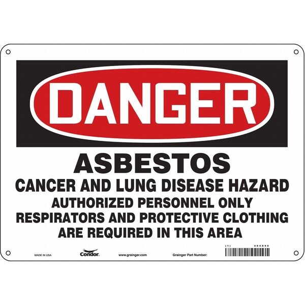 Safety Sign, 10 in Height, 14 in Width, Aluminum, Horizontal Rectangle, English, 464X96SKU G5815509Categories SafetyDescription Safety Sign, Horizontal Rectangle, Number of Printed Sides 1, English, Sign Format Traditional OSHA, Sign Legend Asbestos Cancer And Lung Disease Hazard Authorized Personnel Only Respirators And Protective Clothing Are Required In This Area, Sign Legend Background Color White, Sign Legend Style TextgraingerSKU: 464X96, mscSKU: , zoro_no: G5815509, mongo_id: 65bbe8ab22d7a989a990aa9e
