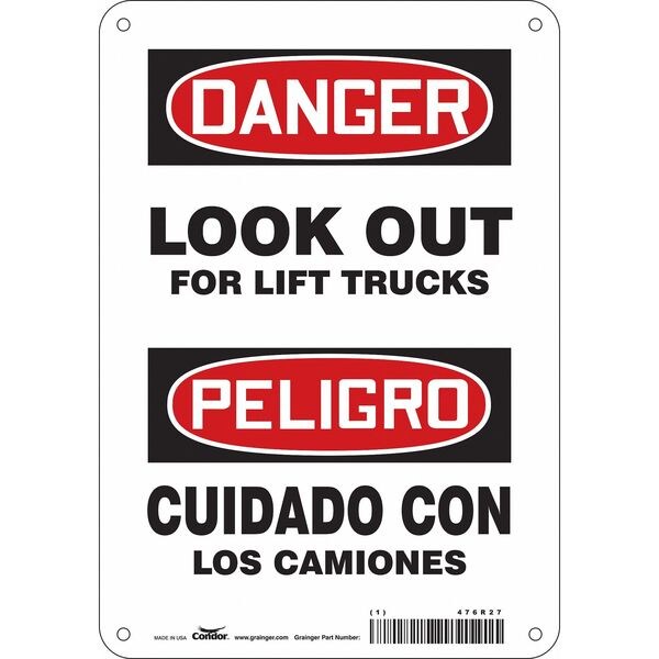 Safety Sign, 10 in Height, 7 in Width, Aluminum, Horizontal Rectangle, English, Spanish, 476R27SKU G5809321Categories SafetyDescription Safety Sign, Horizontal Rectangle, Number of Printed Sides 1, English, Spanish, Sign Format Traditional OSHA, Sign Legend Look Out For Lift Trucks/Cuidado Con Los Camiones, Sign Legend Background Color White, Sign Legend Style TextgraingerSKU: 476R27, mscSKU: , zoro_no: G5809321, mongo_id: 65bbe8ab22d7a989a990aa5d