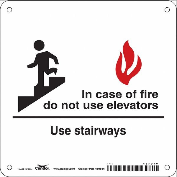 SKU G5645223Categories SafetyDescription Safety Sign Emergency Exit, Square, Number of Printed Sides 1, English, Sign Format Other Format, Sign Legend In Case Of Fire Do Not Use Elevators Use Stairways, Sign Legend Background Color White, Sign Legend Style Symbol and TextgraingerSKU: , mscSKU: , zoro_no: G5645223, mongo_id: 65bbe8ab22d7a989a990aa40