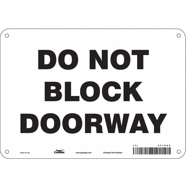Safety Sign, 7 in Height, 10 in Width, Aluminum, Vertical Rectangle, English, 471V92SKU G5186979Categories SafetyDescription Safety Sign, Vertical Rectangle, Number of Printed Sides 1, English, Sign Legend Do Not Block Doorway, Sign Legend Background Color White, Sign Legend Style TextgraingerSKU: 471V92, mscSKU: , zoro_no: G5186979, mongo_id: 65bbe8ab22d7a989a990aae2