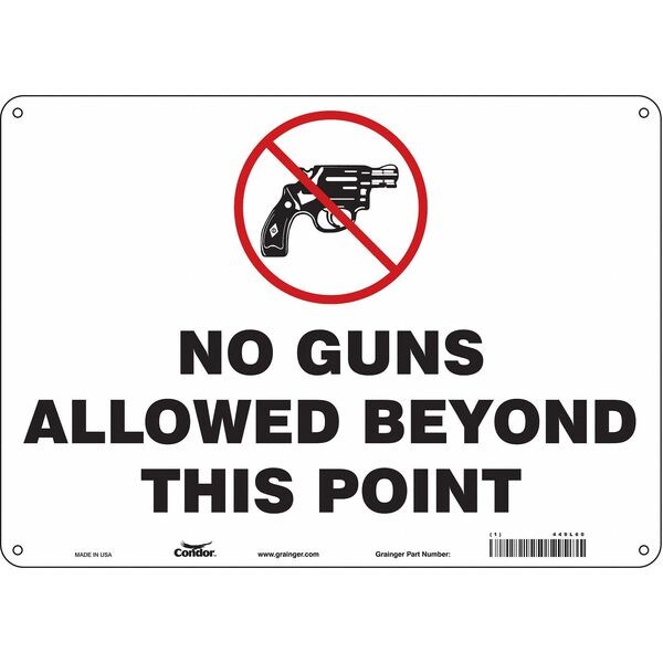 Safety Sign, 10 in Height, 14 in Width, Aluminum, Horizontal Rectangle, English, 449L60SKU G5781839Categories SafetyDescription Safety Sign, Horizontal Rectangle, Number of Printed Sides 1, English, Sign Legend No Guns Allowed Beyond This Point, Sign Legend Background Color White, Sign Legend Style Symbol and TextgraingerSKU: 449L60, mscSKU: , zoro_no: G5781839, mongo_id: 65bbe8ab22d7a989a990aae0