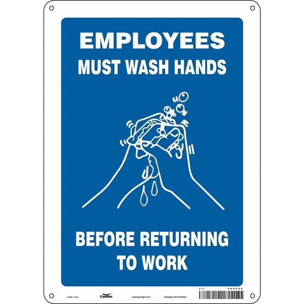 SKU G5234798Categories SafetyDescription Safety Sign, Vertical Rectangle, Number of Printed Sides 1, English, Sign Legend Employees Must Wash Hands Before Returning To Work, Sign Legend Background Color Blue, Sign Legend Style Symbol and TextgraingerSKU: 469C46, mscSKU: , zoro_no: G5234798, mongo_id: 65bbe8ab22d7a989a990aa82