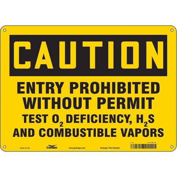 Safety Sign, 10 in Height, 14 in Width, Aluminum, Horizontal Rectangle, English, 470K43SKU G5581742Categories SafetyDescription Safety Sign, Horizontal Rectangle, Number of Printed Sides 1, English, Sign Format Traditional OSHA, Sign Legend Entry Prohibited Without Permit Test For O2 Deficiency, H2S And Combustible Vapors, Sign Legend Background Color Yellow, Sign Legend Style TextgraingerSKU: 470K43, mscSKU: , zoro_no: G5581742, mongo_id: 65bbe8ab22d7a989a990aac6