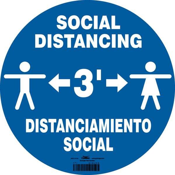 COVID 19 Social Distancing Floor Sign, 12 in H, 12 in W, Vinyl, English, Spanish, 61KJ34