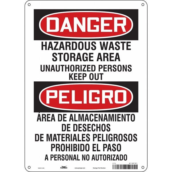 SKU G5899560Categories SafetyDescription Safety Sign, Vertical Rectangle, Number of Printed Sides 1, English, Spanish, Sign Format Traditional OSHA, Sign Legend Hazardous Waste Storage Area Unauthorized Persons Keep Out/Area De Almacenamiento De Desechos De Materiales Peligrosos. Prohibido El Paso A Personal No Autorizado, Sign Legend Background Color White, Sign Legend Style TextgraingerSKU: 472P91, mscSKU: , zoro_no: G5899560, mongo_id: 65bbe8ab22d7a989a990a956