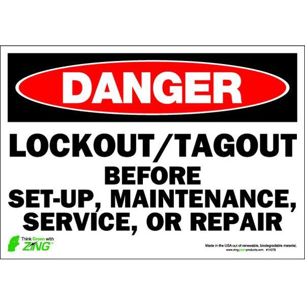Danger Sign, 7 in Height, 10 in Width, Polyester, Rectangle, EnglishSKU G8434583Categories SafetyDescription Danger Sign, Sign Subject Matter Lockout Tagout, Height 7 in, Width 10 in, Sign Material Polyester, Sign Mounting Style Adhesive Surface, Header Danger, Legend Lockout/Tagout Before Set-Up, Maintenance, Service, Or Repair, Printed Language English, Sign Shape RectanglegraingerSKU: , mscSKU: , zoro_no: G8434583, mongo_id: 65bbe8ab22d7a989a990a777