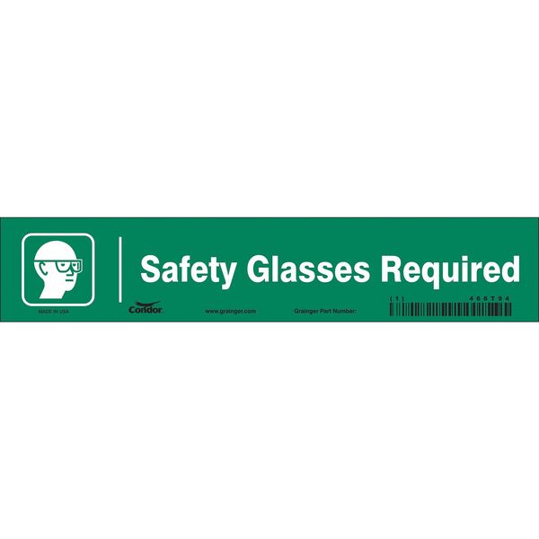 SKU G5101999Categories SafetyDescription Safety Sign, Horizontal Rectangle, Number of Printed Sides 1, English, Sign Format Other Format, Sign Legend Safety Glasses Required, Sign Legend Background Color Green, Sign Legend Style Symbol and TextgraingerSKU: 466T94, mscSKU: , zoro_no: G5101999, mongo_id: 65bbe88a9a749db822798765