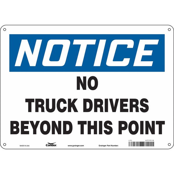 SKU G5770937Categories SafetyDescription Safety Sign, Horizontal Rectangle, Number of Printed Sides 1, English, Sign Format Traditional OSHA, Sign Legend No Truck Drivers Beyond This Point, Sign Legend Background Color White, Sign Legend Style TextgraingerSKU: 477F16, mscSKU: , zoro_no: G5770937, mongo_id: 65bbe88a9a749db8227986c5