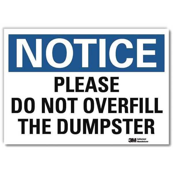 NoticeSign, ReflecSelfAdhVinyl, 10inWx7inH, U5-1448-RD_10X7SKU G2758850Categories SafetyDescription Notice Sign, Vertical Rectangle, Number of Printed Sides 1, English, Sign Format Traditional OSHA, Sign Legend Please Do Not Overfill The Dumpster, Sign Legend Background Color White, Sign Legend Style TextgraingerSKU: 34JV03, mscSKU: , zoro_no: G2758850, mongo_id: 65bbe8ab22d7a989a990a54a