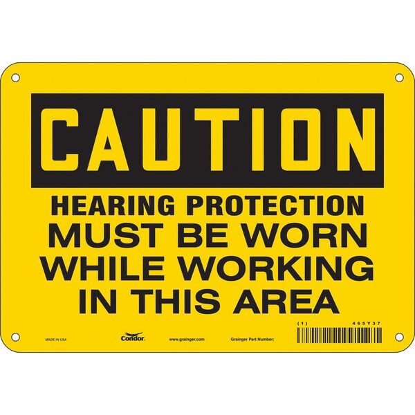 Safety Sign, 7 in Height, 10 in Width, Aluminum, Vertical Rectangle, English, 465Y37SKU G5796310Categories SafetyDescription Safety Sign, Vertical Rectangle, Number of Printed Sides 1, English, Sign Format Traditional OSHA, Sign Legend Hearing Protection Must Be Worn While Working In This Area, Sign Legend Background Color Yellow, Sign Legend Style TextgraingerSKU: 465Y37, mscSKU: , zoro_no: G5796310, mongo_id: 65bbe6983aaddbd5a903db79