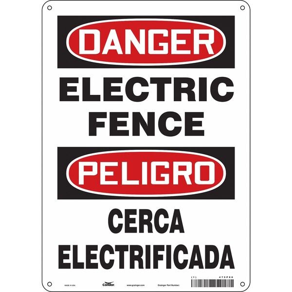 SKU G5589941Categories SafetyDescription Safety Sign, Vertical Rectangle, Number of Printed Sides 1, English, Spanish, Sign Format Traditional OSHA, Sign Legend Electric Fence/Cerca Electrificada, Sign Legend Background Color White, Sign Legend Style TextgraingerSKU: 475P86, mscSKU: , zoro_no: G5589941, mongo_id: 65bbe6983aaddbd5a903db53