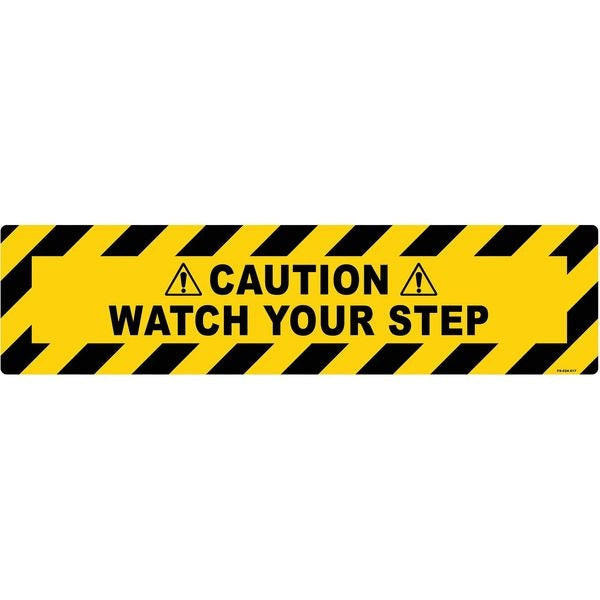 Floor Sign, 6 in H, 24 in W, Vinyl, Horizontal Rectangle, English, FS-624-617SKU G6532668Categories SafetyDescription Floor Sign, Horizontal Rectangle, Number of Printed Sides 1, English, Sign Format Other Format, Sign Legend Caution Watch Your Step, Sign Legend Background Color Yellow, Sign Legend Style Symbol and Text, Sign Legend Character Height 1 1/4 ingraingerSKU: 484P36, mscSKU: , zoro_no: G6532668, mongo_id: 65bbe6983aaddbd5a903dd05