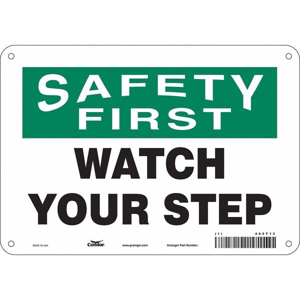 Safety Sign, 7 in Height, 10 in Width, Aluminum, Vertical Rectangle, English, 469T13SKU G5564872Categories SafetyDescription Safety Sign, Vertical Rectangle, Number of Printed Sides 1, English, Sign Format Traditional OSHA, Sign Legend Watch Your Step, Sign Legend Background Color White, Sign Legend Style TextgraingerSKU: 469T13, mscSKU: , zoro_no: G5564872, mongo_id: 65bbe6983aaddbd5a903dad5