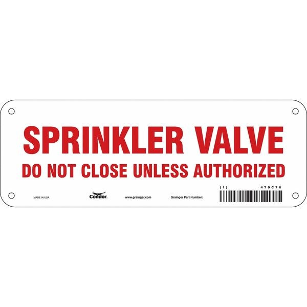 Safety Sign, 10" W, 3-1/2" H, 0.032" Thick, 470C76SKU G5652698Categories SafetyDescription Safety Sign, Vertical Rectangle, Number of Printed Sides 1, English, Sign Format Other Format, Sign Legend Sprinkler Valve Do Not Close Unless Authorized, Sign Legend Background Color White, Sign Legend Style TextgraingerSKU: 470C76, mscSKU: , zoro_no: G5652698, mongo_id: 65bbe6983aaddbd5a903d95b