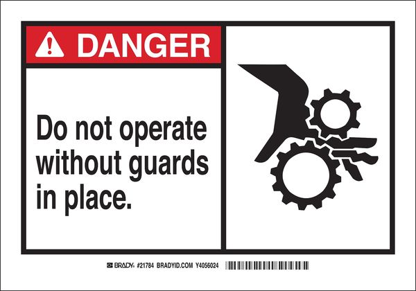 SKU G7397107Categories SafetyDescription Danger Sign, Sign Subject Matter Machine Guarding, Height 7 In., Width 10 In., Sign Material Polyester, Sign Mounting Style Adhesive Surface, Header Danger, Legend Do Not Operate Without Guards In Place, Printed Language English, Sign Shape Rectangle$11.49 / eachWeb priceDanger Sign, 7" Height, 10" Width, Polyester, Rectangle, EnglishSKU G7397107Categories SafetyDescription Danger Sign, Sign Subject Matter Machine Guarding, Height 7 In., Width 10 In., Sign Material Polyester, Sign Mounting Style Adhesive Surface, Header Danger, Legend Do Not Operate Without Guards In Place, Printed Language English, Sign Shape Rectangle$11.49 / eachWeb price -