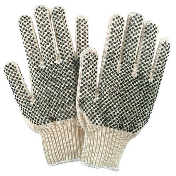 Knit Gloves, L, Natural/Blk, PVC, PR