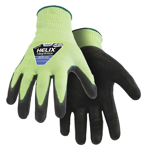 Hi-Vis Cut Resistant Coated Gloves, A9 Cut Level, Polyurethane, S, 1 PR