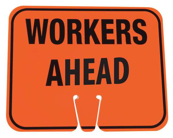 SKU G1418051Categories SafetyDescription Traffic Cone Sign, Product Type Traffic Cone Sign, Legend Workers Ahead, Material Plastic, Height 10 1/2 in, Width 12 3/4 in, For Use With Product Type Traffic Cones, Weight 0.5 lb, Color Orange/Black, For Cone Opening 1 39/100 in, Thickness 0.125 ingraingerSKU: , mscSKU: , zoro_no: G1418051, mongo_id: 65bbe8dd22d7a989a991e99f