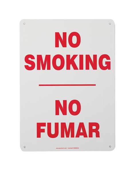 SKU G1728485Categories SafetyDescription No Smoking Sign, Sign Subject Matter No Smoking, Height 14 in, Width 10 in, Sign Material Vinyl, Sign Mounting Style Adhesive Surface, Header No Header, Legend No Smoking/No Fumar, Printed Language English, Spanish, Sign Shape RectanglegraingerSKU: , mscSKU: , zoro_no: G1728485, mongo_id: 65bbe94522d7a989a994423b