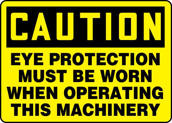 SKU G1730375Categories SafetyDescription Caution Sign, Sign Subject Matter Personal Protection, Height 7 in, Width 10 in, Sign Material Plastic, Header Caution, Legend Eye Protection Must Be Worn When Operating This Machinery, Printed Language English, Sign Shape RectanglegraingerSKU: , mscSKU: , zoro_no: G1730375, mongo_id: 65bbe94522d7a989a994424d