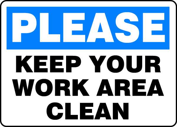 SKU G1694036Categories SafetyDescription Housekeeping Sign, Sign Subject Matter Cleaning and Maintenance, Height 10 In., Width 14 In., Sign Material Vinyl, Sign Mounting Style Adhesive Surface, Header No Header, Legend Please Keep Your Work Area Clean, Printed Language English, Sign Shape RectanglegraingerSKU: , mscSKU: , zoro_no: G1694036, mongo_id: 65bbe94522d7a989a9944295